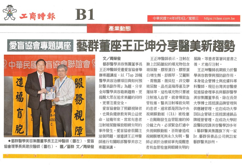 愛盲協會專題講座 藝群董座王正坤分享醫美新趨勢 -工商時報-yahoo股市-中時新聞網