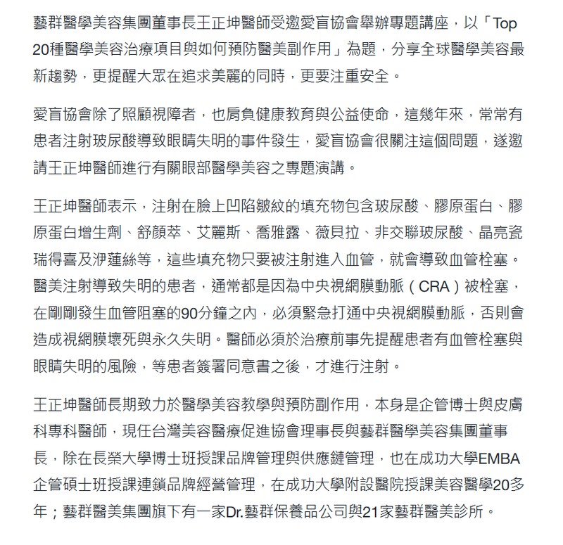 https://tw.stock.yahoo.com/news/愛盲協會專題講座-藝群董座王正坤分享醫美新趨勢-201000102.html -yahoo股市