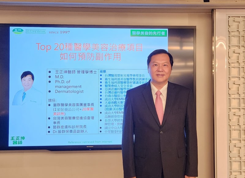 王正坤醫師本身是企管博士與皮膚科專科醫師,現任台灣美容醫療促進協會理事長與藝群醫學美容集團董事長,在長榮大學博士班授課品牌管理與供應鏈管理,在成功大學EMBA企管碩士班授課連鎖品牌經營管理,在成功大學附設醫院授課美容醫學20多年。藝群醫美集團旗下有1家Dr.藝群保養品公司與21家藝群醫美診所分布在台灣各縣市,王正坤醫師長期致力於醫學美容教學與預防副作用。