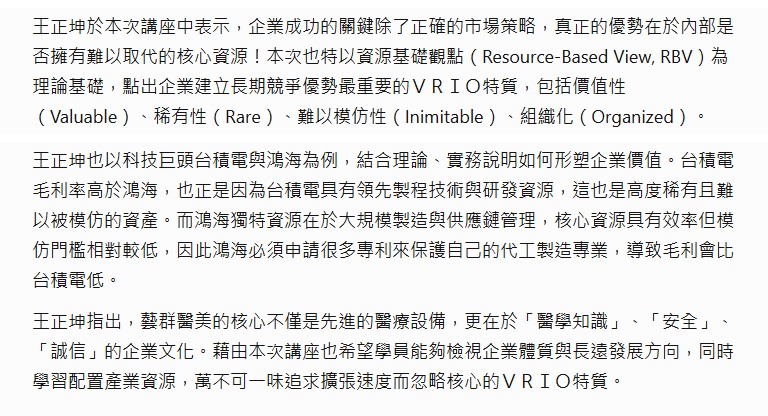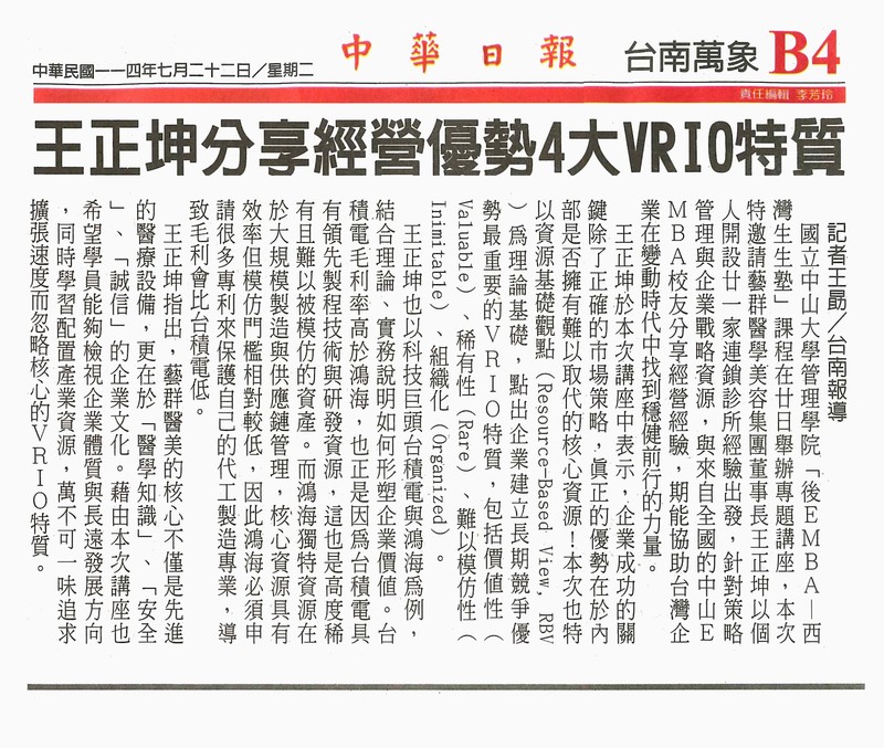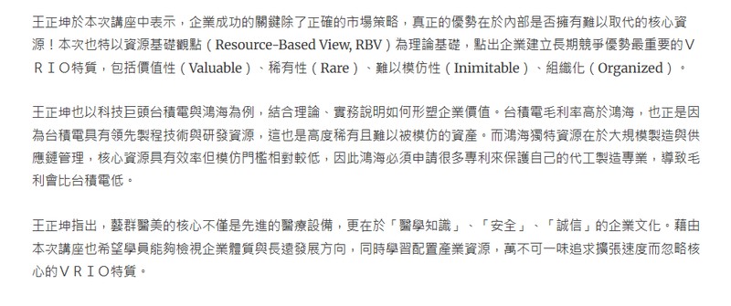 王正坤分享經營優勢4大VRIO特質 -中華日報|中華新聞雲-today.line-理財