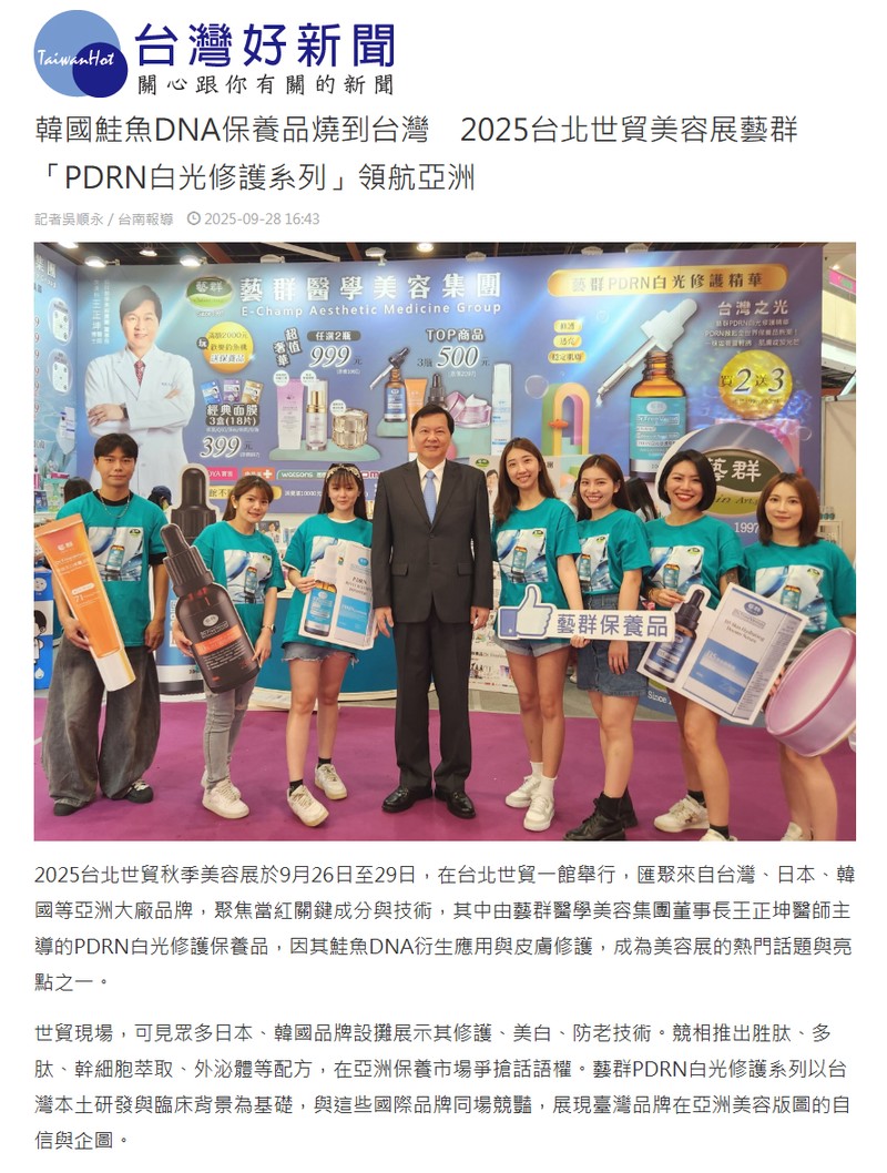 韓國鮭魚DNA保養品燒到台灣 2025台北世貿美容展藝群「PDRN白光修護系列」領航亞洲 -台灣好新聞 TaiwanHot
