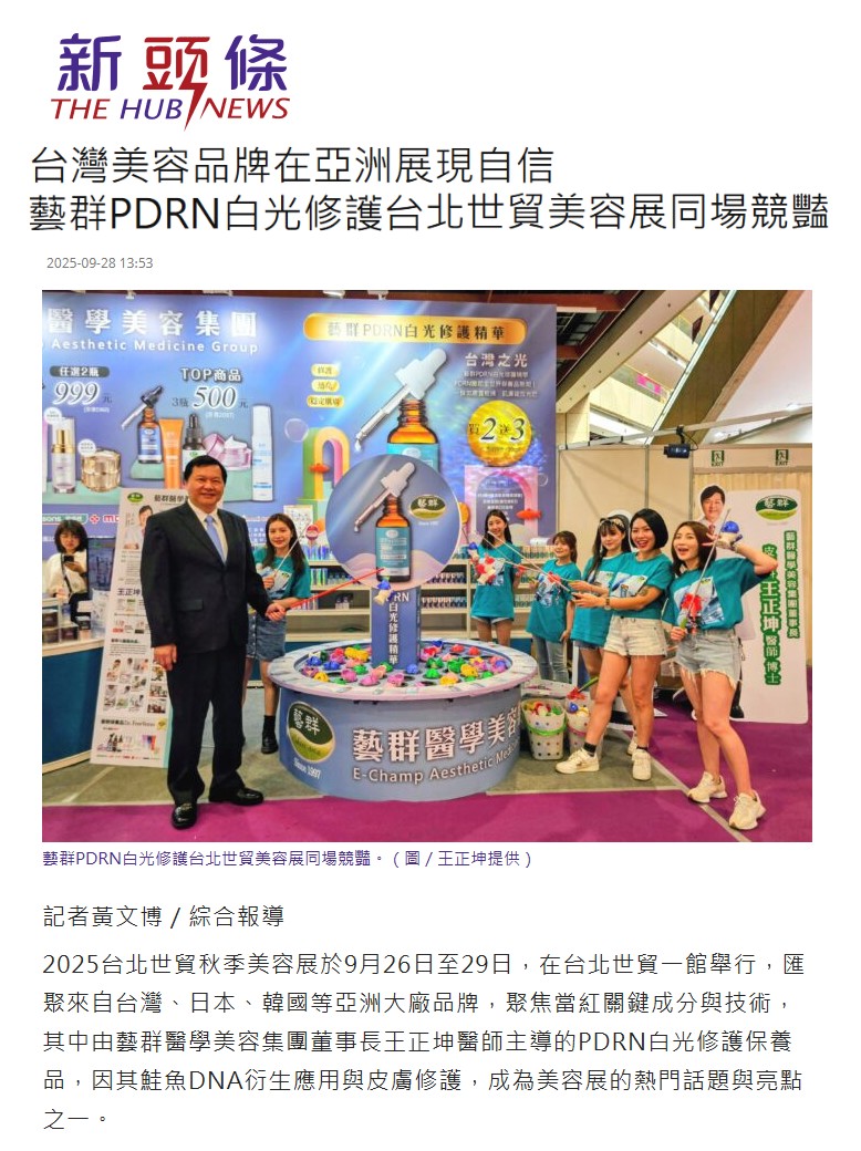 台灣美容品牌在亞洲展現自信 藝群PDRN白光修護台北世貿美容展同場競豔 - 新頭條新聞-TheHubNews-享新聞-睿傳媒-coolbar Life生活誌-屏東時報電子報-勢傳媒-奧丁丁新聞-yamNews新聞-PChome新聞