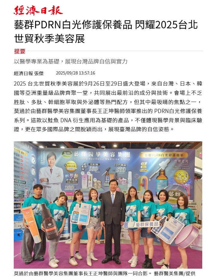 藝群PDRN白光修護保養品 閃耀2025台北世貿秋季美容展 -經濟日報