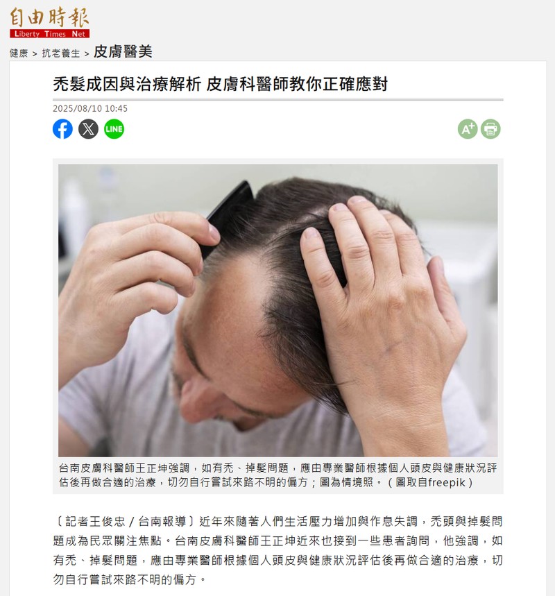 禿髮成因與治療解析 皮膚科醫師教你正確應對-王正坤醫師-自由時報