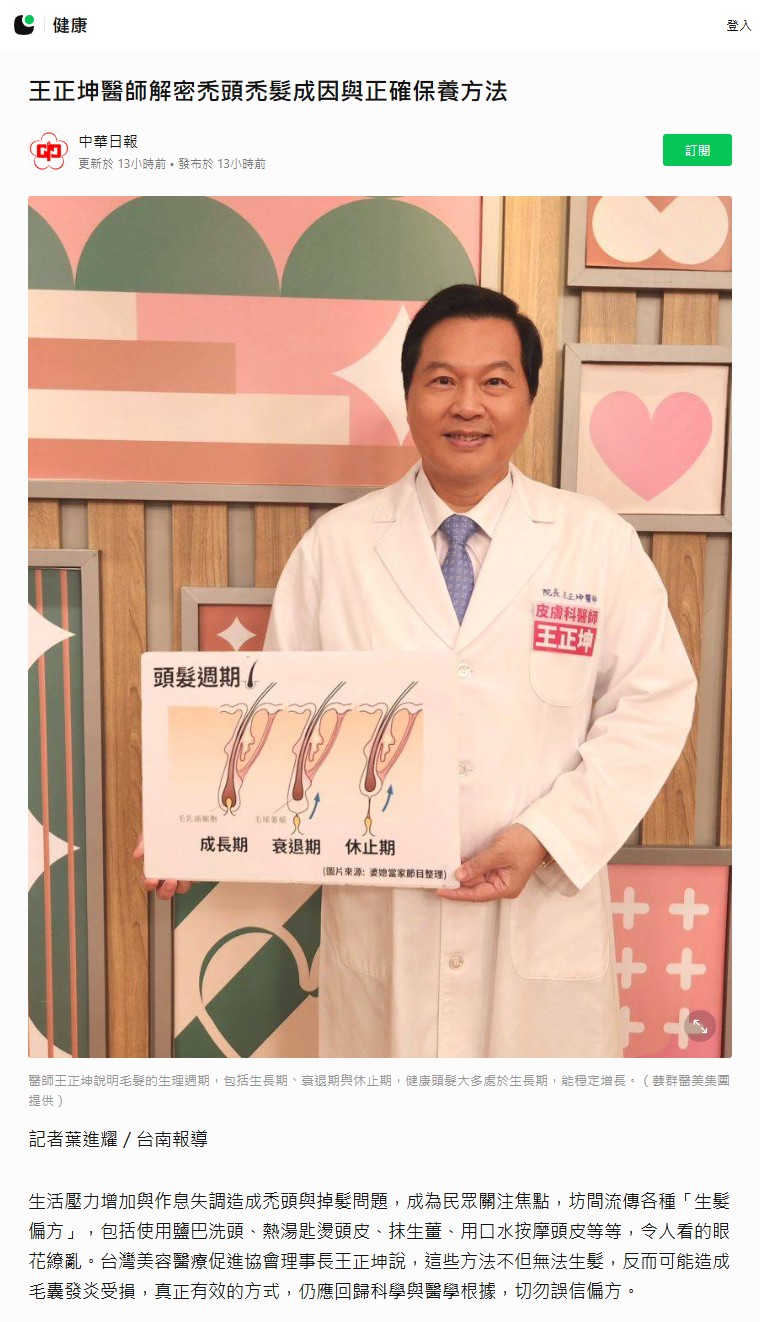 王正坤醫師解密禿頭禿髮成因與正確保養方法 -yahoo新聞-LINE TODAY-中華日報