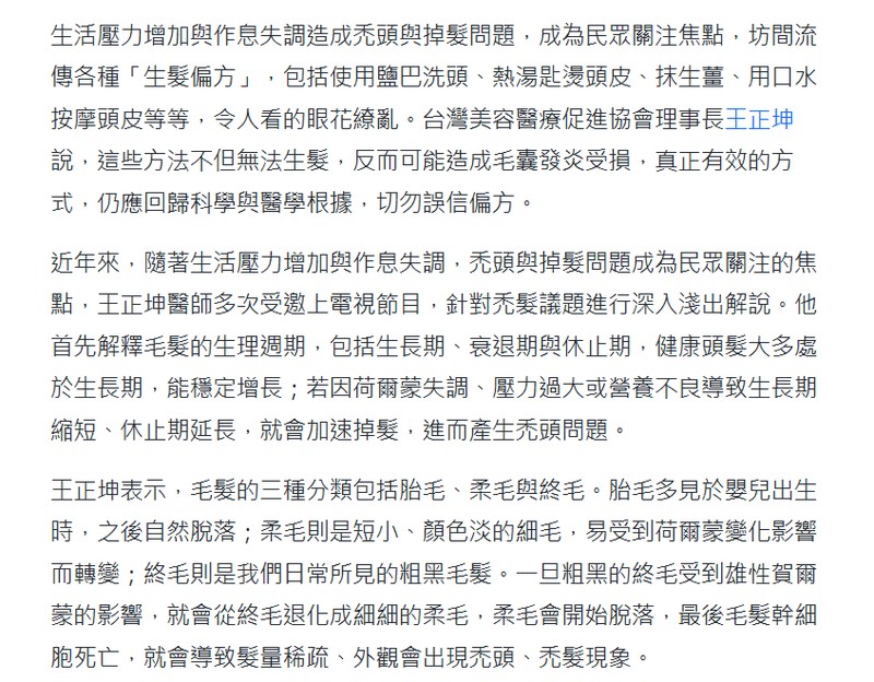 https://tw.news.yahoo.com/王正坤醫師解密禿頭禿髮成因與正確保養方法-113829731.html -yahoo新聞