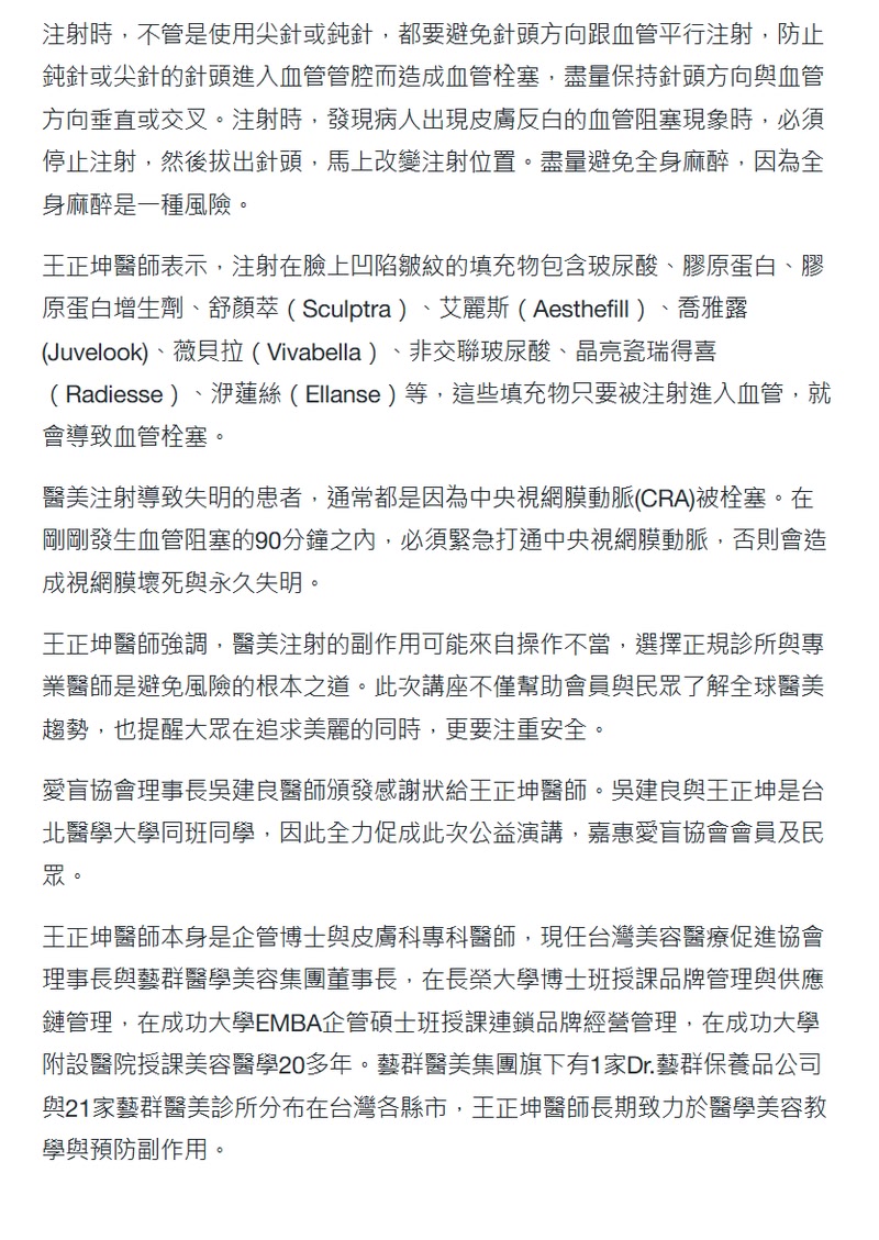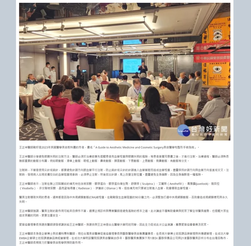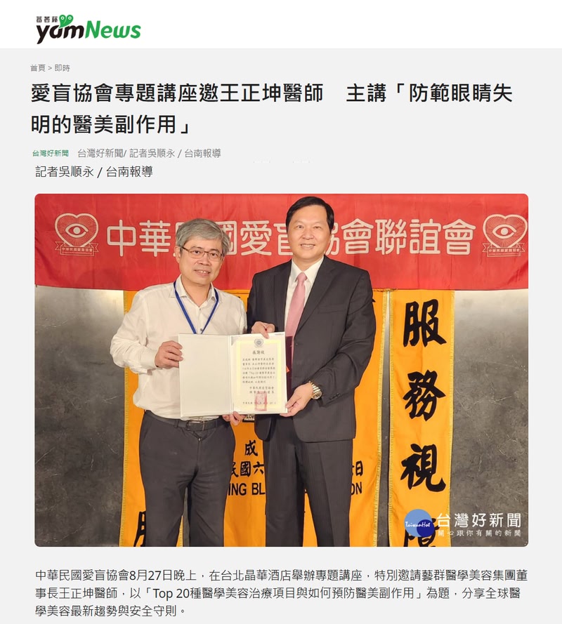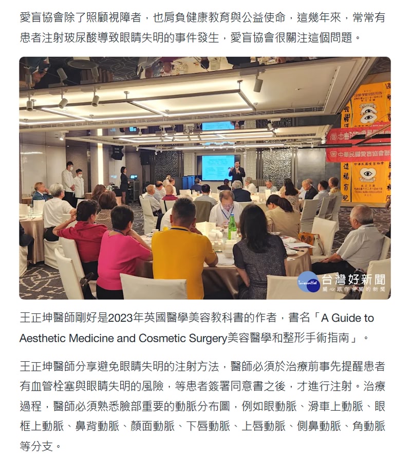 愛盲協會專題講座邀王正坤醫師 主講「防範眼睛失明的醫美副作用」-Yahoo奇摩新聞-蕃新聞-TDN TODAY 善思新聞網-台灣好新聞-2