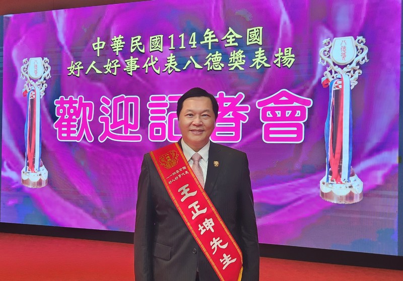 2025/12/11 標題: 從學生志工到企業慈善家 王正坤醫師行善不輟 榮登全國好人好事代表八德獎-2 標題: 從學生志工到企業慈善家 王正坤醫師行善不輟 榮登全國好人好事代表八德獎 由中華民國表揚好人好事運動協會主辦的「114年全國好人好事代表八德獎頒獎典禮」,於12月10日在臺北市政府青年局舉行。王正坤醫師以長年深耕醫療公益、扶助弱勢及回饋教育的卓越事蹟,榮獲「八德獎」殊榮,...