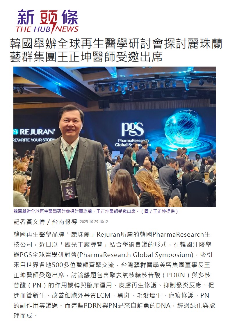 2025/10/30 韓國舉辦全球再生醫學研討會探討麗珠蘭 藝群集團王正坤醫師受邀出席-新頭條新聞-享新聞-睿傳媒-yamNews新聞-世界觀新聞-台南時報-台北郵報-PChome新聞 韓國舉辦全球再生醫學研討會探討麗珠蘭 藝群集團王正坤醫師受邀出席-新頭條新聞-享新聞-睿傳媒-coolbar Life生活誌-GOTHE 走.遊-在地人新聞 LTVNews-屏東時報電子報-勢傳媒-奧丁丁新聞-yamNews新聞-世界觀新聞-台南時報-台北郵報-PChome新聞 https://www.thehubnews.net/archives/562179...