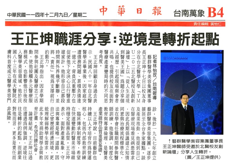 2025/12/20 我在博士班授課的”品牌管理課程”。這是本學期最後一堂課,每一位博士生都非常棒!學生們報告很精彩!我也教學的很愉快!王正坤醫師帶著藝群眼睛去教書!-1 我在博士班授課的”品牌管理課程”。這是本學期最後一堂課,每一位博士生都非常棒!學生們報告很精彩!我也教學的很愉快!王正坤醫師帶著藝群眼睛去教書! -------------------------------------------- 王正坤醫師: 現任:藝群醫學美容集團董事長、藝群皮膚科診所院...