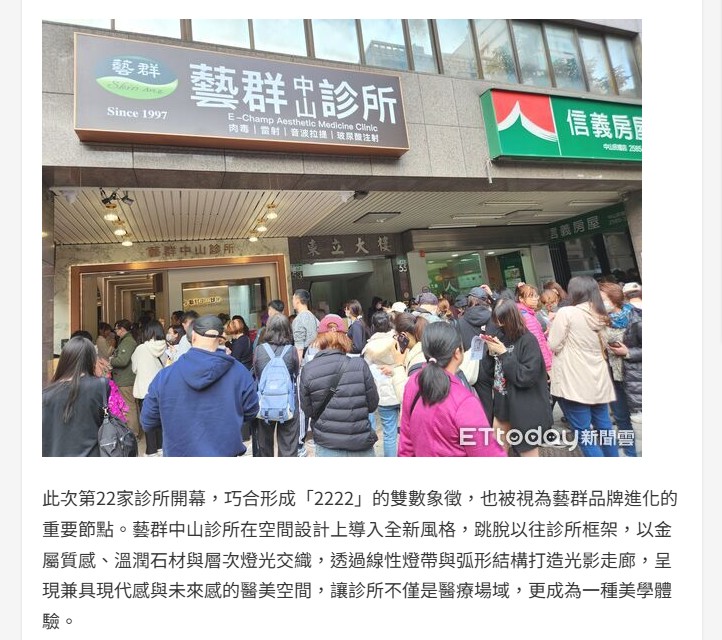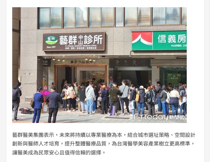插旗台北中山區捷運商圈 台南藝群醫美第22家中山診所開幕 -東森新聞雲-ETtoday新聞雲