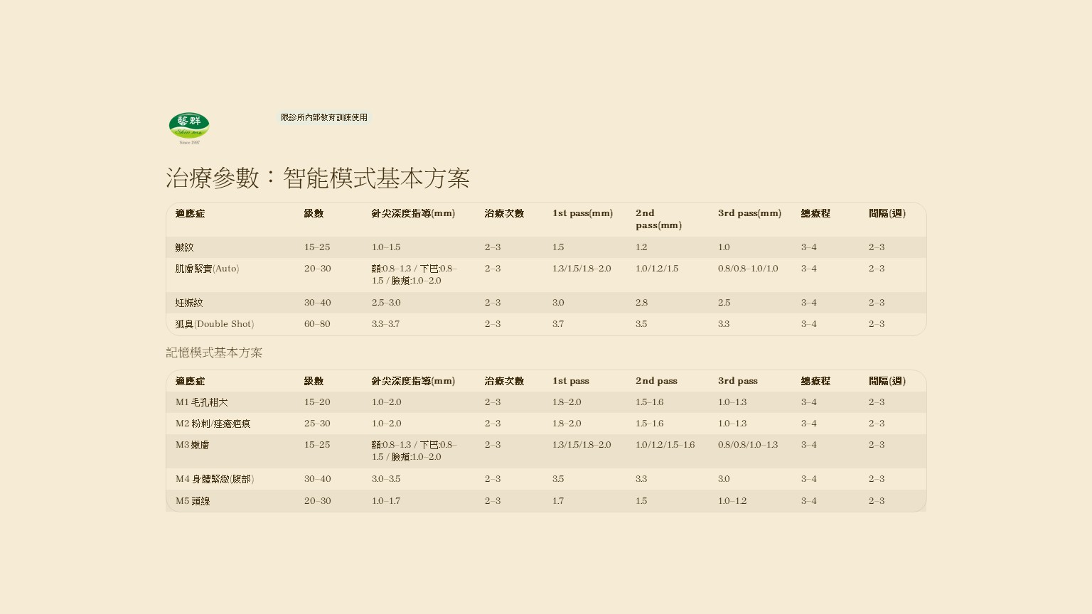 ▲智慧模式:讓使用者輕鬆存取常用治療參數,節省治療時間,並確保整個療程參數設定一致。