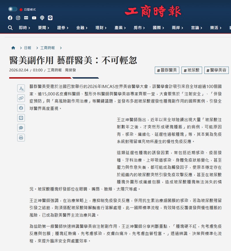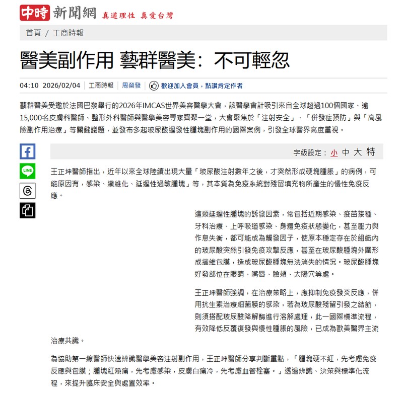 醫美副作用 藝群醫美:不可輕忽 -王正坤醫師-工商時報-中時新聞網