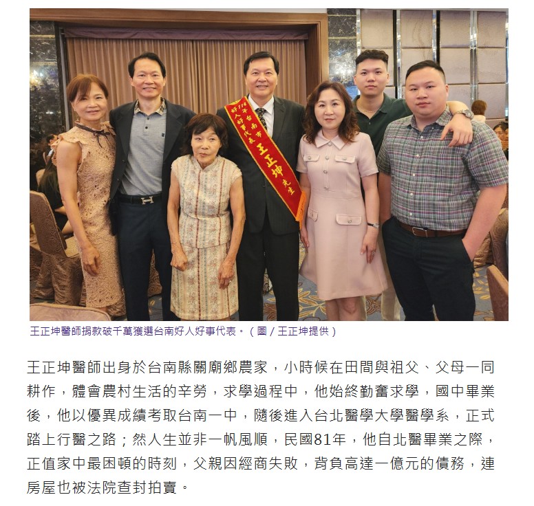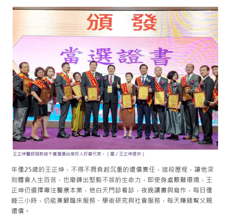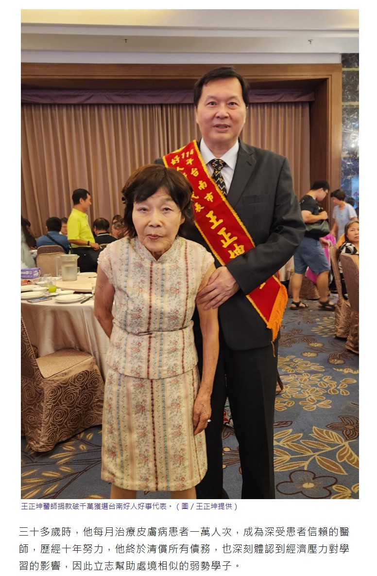 王正坤醫師以助學善舉改變無數人生 捐款破千萬獲選台南好人好事代表 -新頭條-享新聞-睿傳媒-屏東時報電子報-勢傳媒-奧丁丁新聞-yamNews新聞-PChome新聞