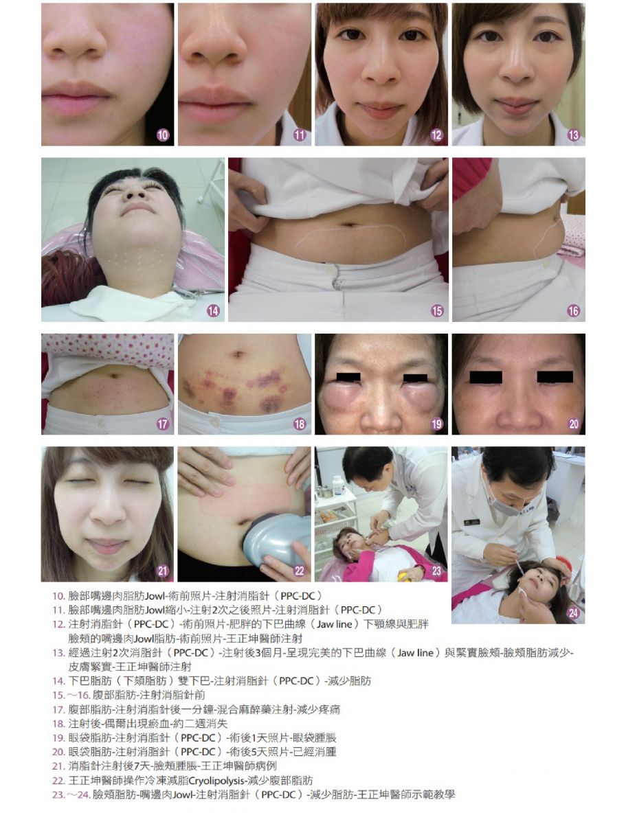王正坤告知醫師們,冷凍減脂來減少腹部脂肪厚度,因為少見副作用與無痛治療,已 經成為流行的治療項目,但仍必須防止冷凍減脂副作用:凍傷、潰爛與疤痕,如果沒有小心操作冷凍減脂儀器,將會產生凍傷、水泡、潰瘍、疤痕與色素沉澱等副作用。