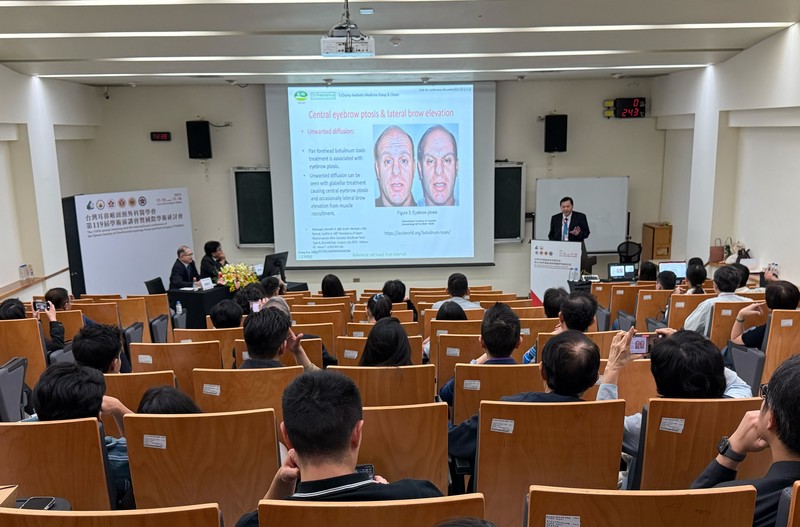 王正坤醫師於講座中以實際案例分析臨床常見的併發症,並提出具體預防與治療建議。常見三類醫美併發症有雷射或電波拉皮的術後反黑、肉毒桿菌素注射導致眼皮下垂與臉部不對稱、玻尿酸注射導致血管栓塞、壓迫或眼睛失明。