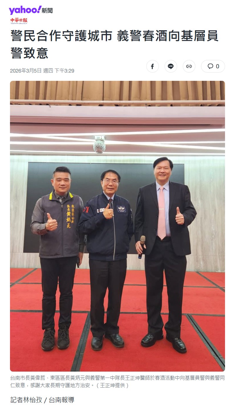 https://tw.news.yahoo.com/警民合作守護城市-義警春酒向基層員警致意-072943548.html -Yahoo奇摩新聞