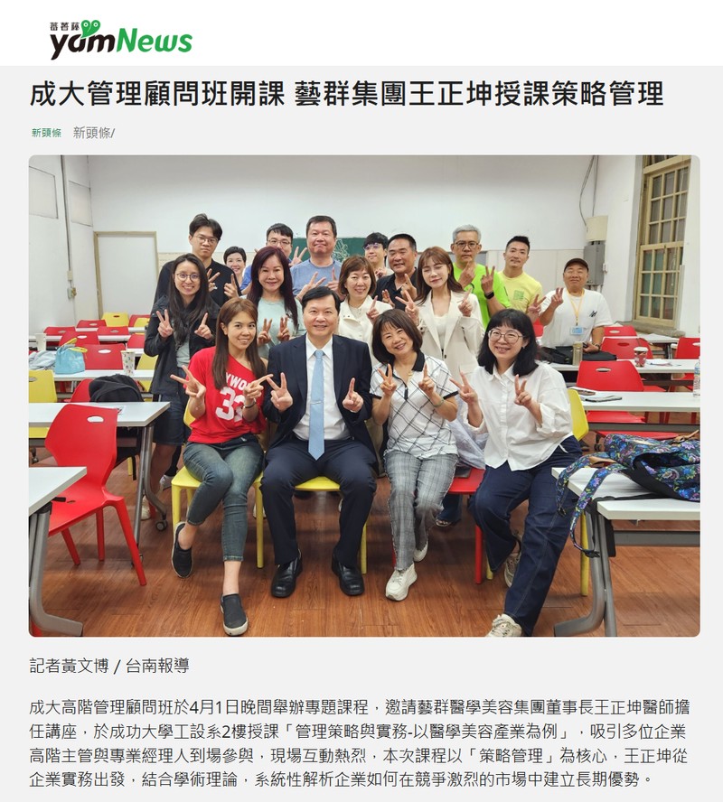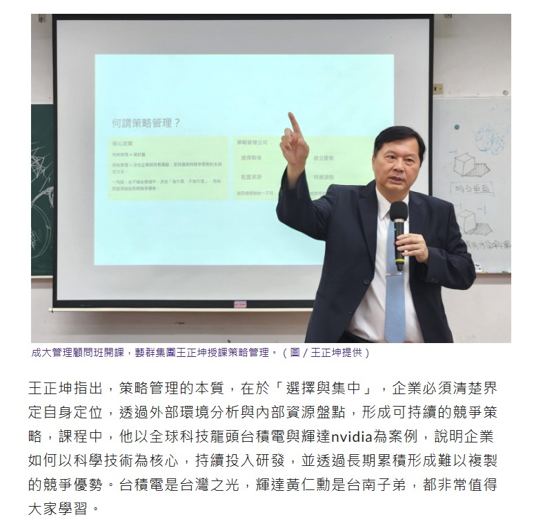 成大管理顧問班開課 藝群集團王正坤授課策略管理 -新頭條新聞-享新聞-睿傳媒-yamNews新聞-台南時報-獨家報導-PChome新聞