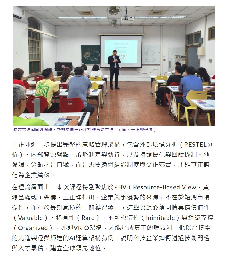 https://www.scooptw.com/local_news/457935/成大管理顧問班開課-藝群集團王正坤授課策略管理/ -獨家報導