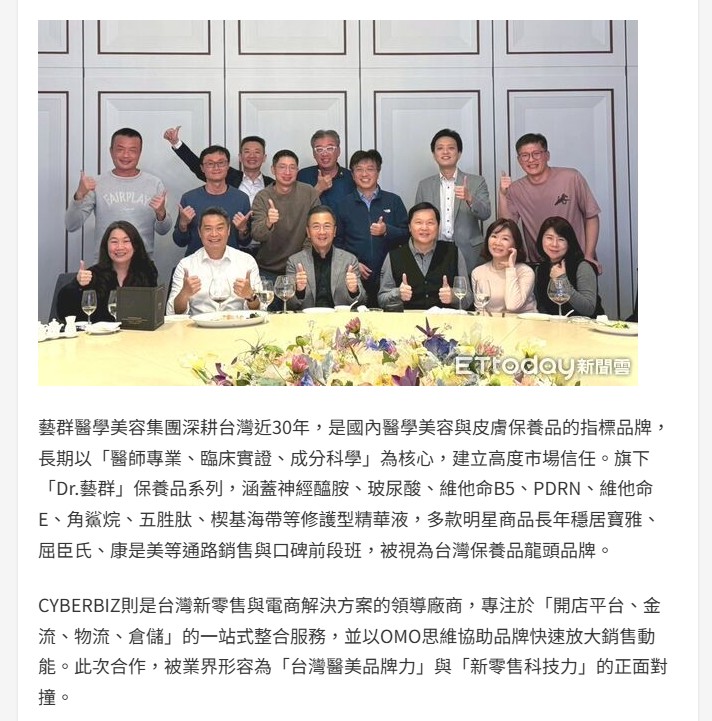 藝群醫美攜手CYBERBIZ 寫下台灣醫美電商新里程碑 -東森新聞雲-ETtoday新聞雲