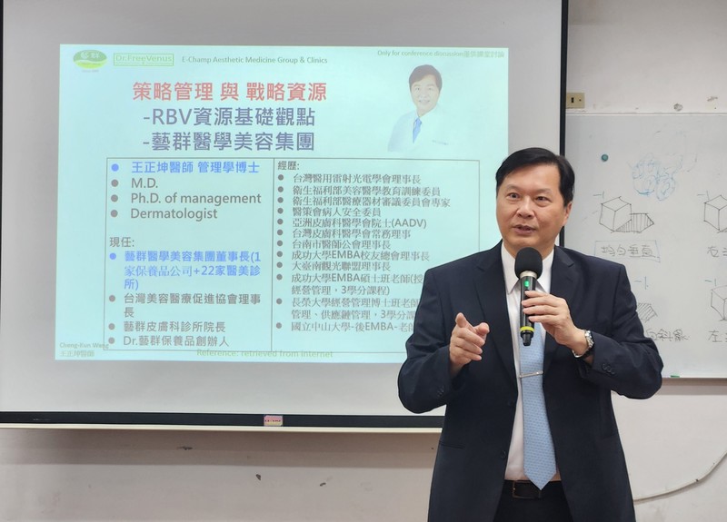 王正坤醫師也將RBV理論延伸至醫學美容產業。他表示,醫美產業的核心資源並非單一設備或產品,而是「醫學知識、臨床技術與誠信文化」的整合。唯有建立標準化訓練系統與一致的服務品質,才能在連鎖化經營中維持品牌信任,進而形成長期競爭優勢。