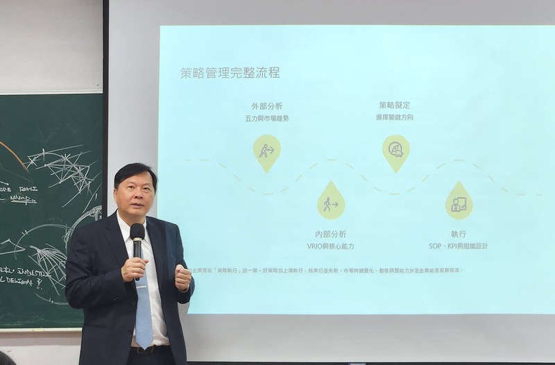 本次課程以「策略管理」為核心,王正坤從企業實務出發,結合學術理論,系統性解析企業如何在競爭激烈的市場中建立長期優勢。他指出,策略管理的本質,在於「選擇與集中」,企業必須清楚界定自身定位,透過外部環境分析與內部資源盤點,形成可持續的競爭策略。課程中,他以全球科技龍頭台積電與輝達nvidia為案例,說明企業如何以科學技術為核心,持續投入研發,並透過長期累積形成難以複製的競爭優勢。台積電是台灣之光,輝達黃仁勳是台南子弟,都非常值得大家學習。