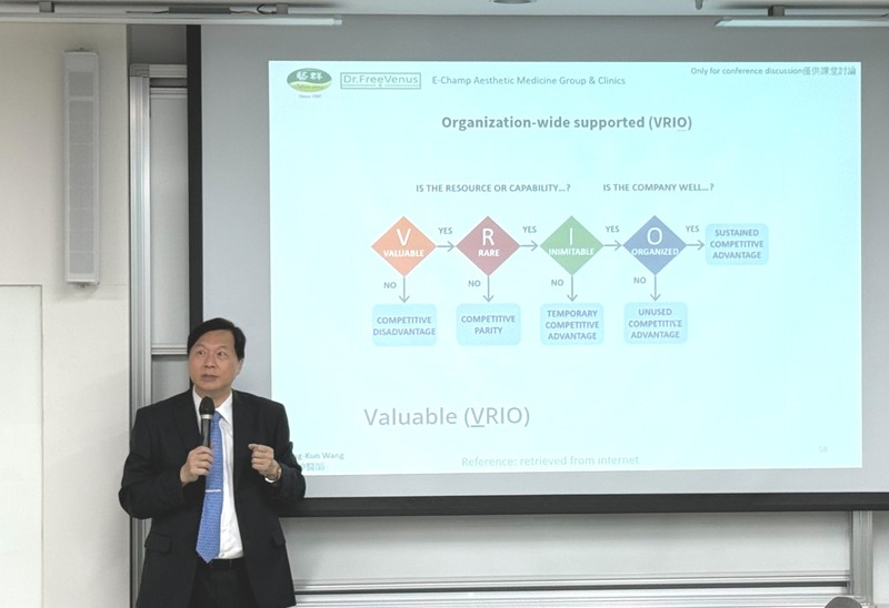 這堂課可以重新檢視企業體質與長遠發展方向,也可以學習資源配置的藝術,許多學員在互動環節中表示深受啟發。王正坤醫師表示,如果太專注於擴張速度,忽略內部資源是否具備VRIO條件,就會逐漸失去競爭力。
