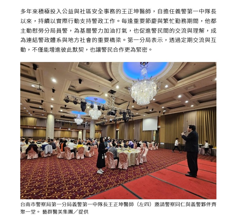 警民攜手守護台南 王正坤醫師春酒慰勞警一分局員警 凝聚治安守護力量-經濟日報-強勢新聞