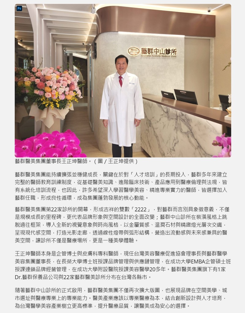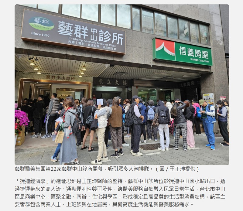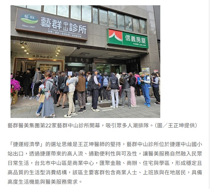 藝群醫美集團第22家藝群中山診所開幕 深耕捷運經濟學插旗台北中山區商圈 -新頭條新聞-享新聞-睿傳媒-台南時報-yam新聞 蕃薯藤新聞-PChome 新聞 -2