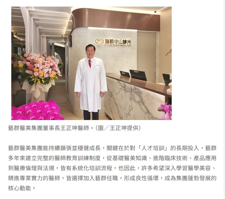 藝群醫美集團第22家藝群中山診所開幕 深耕捷運經濟學插旗台北中山區商圈 -新頭條新聞-享新聞-睿傳媒-奧丁丁新聞-在地人新聞LTVNews-coolbar Life生活誌-GOTHE 走.遊-屏東時報電子報-勢傳媒-台南時報-yam新聞 蕃薯藤新聞-PChome 新聞