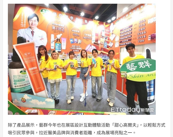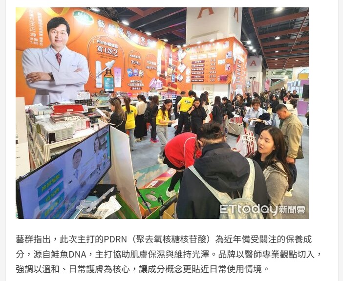 國際美容展登場 台南藝群醫美布局新加坡拚國際能見度 -東森新聞雲-ETtoday新聞雲 2026台北國際美容展登場,藝群醫美集團展示PDRN保養品。