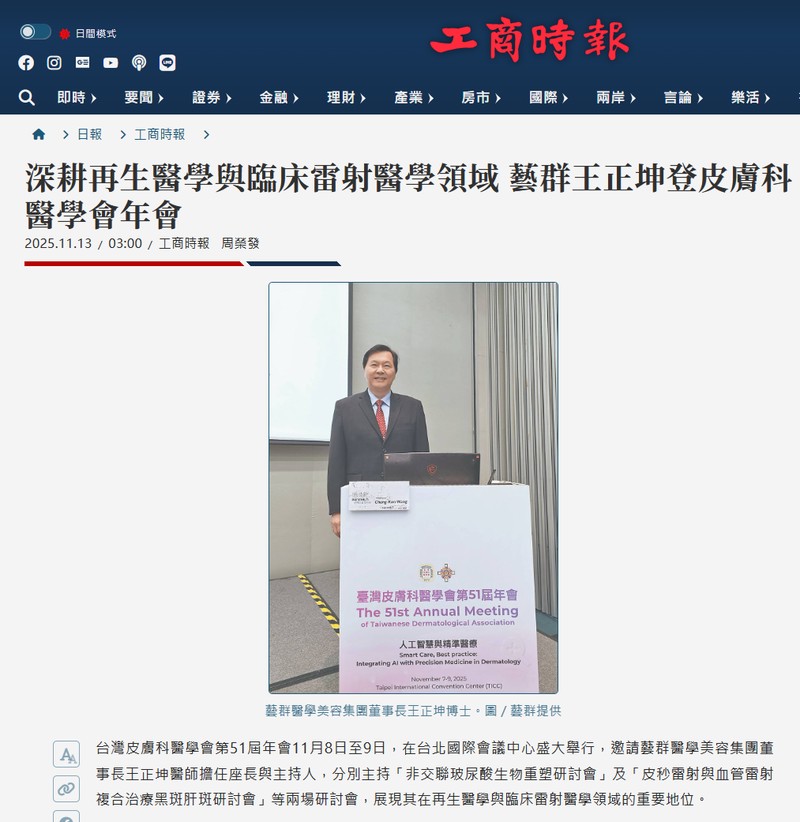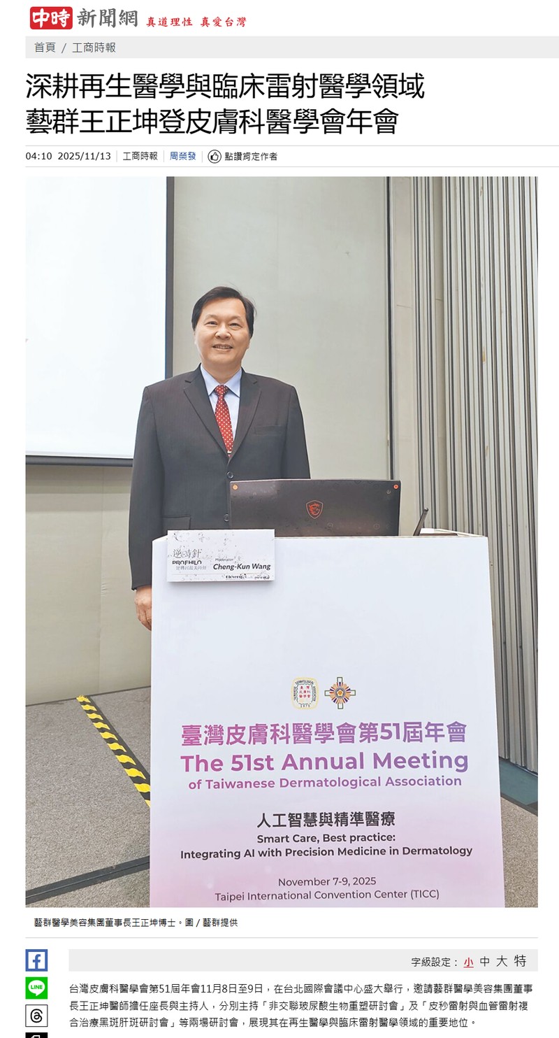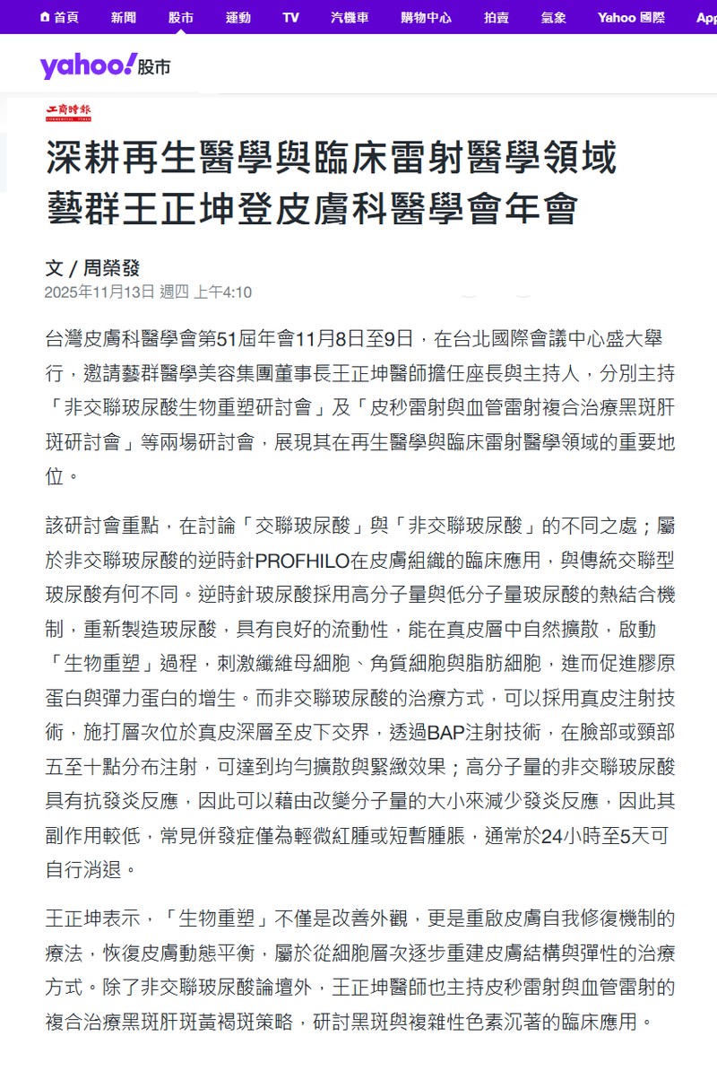 https://tw.stock.yahoo.com/news/深耕再生醫學與臨床雷射醫學領域-藝群王正坤登皮膚科醫學會年會-201000520.html -奇摩股市