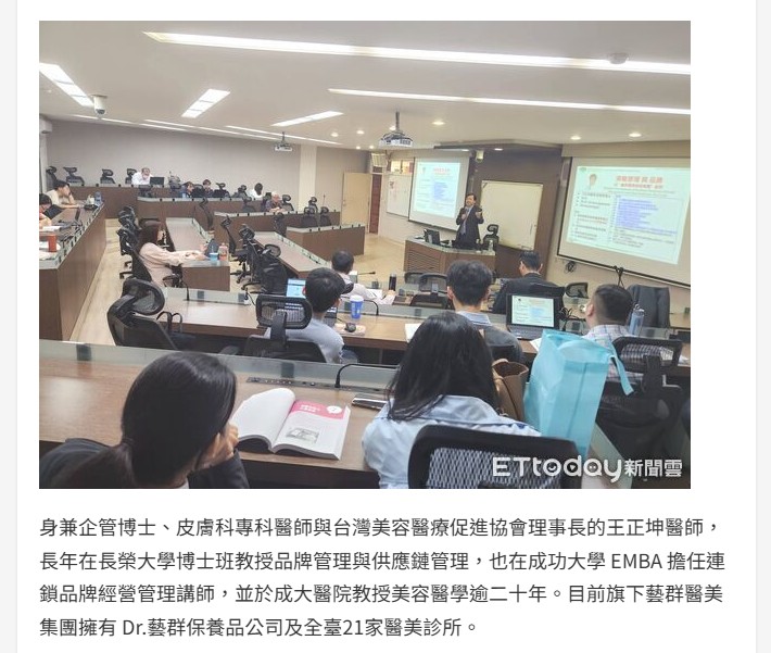 打造企業品牌金字塔 王正坤醫師長榮大學博士班開課 -東森新聞雲-ETtoday新聞雲