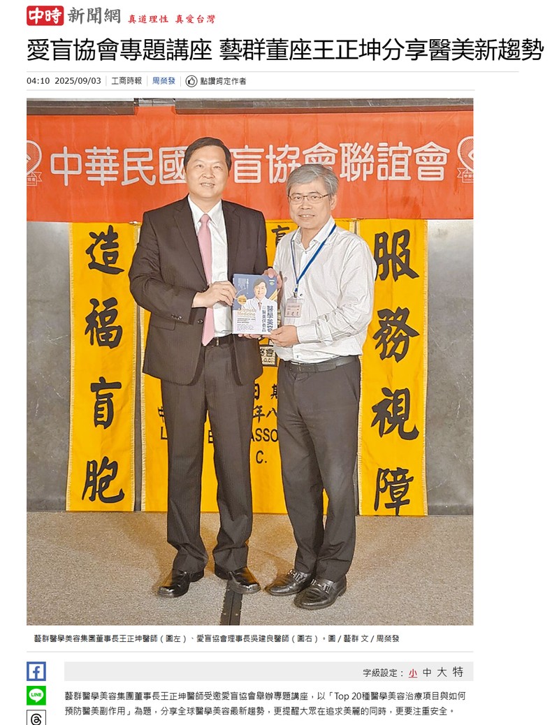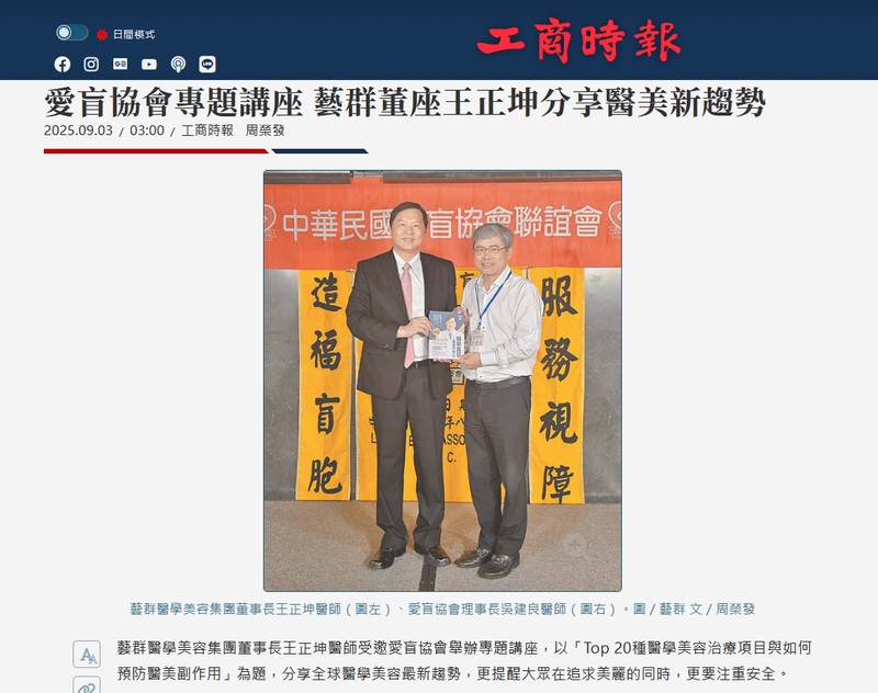 愛盲協會專題講座 藝群董座王正坤分享醫美新趨勢 -工商時報-yahoo股市-中時新聞網