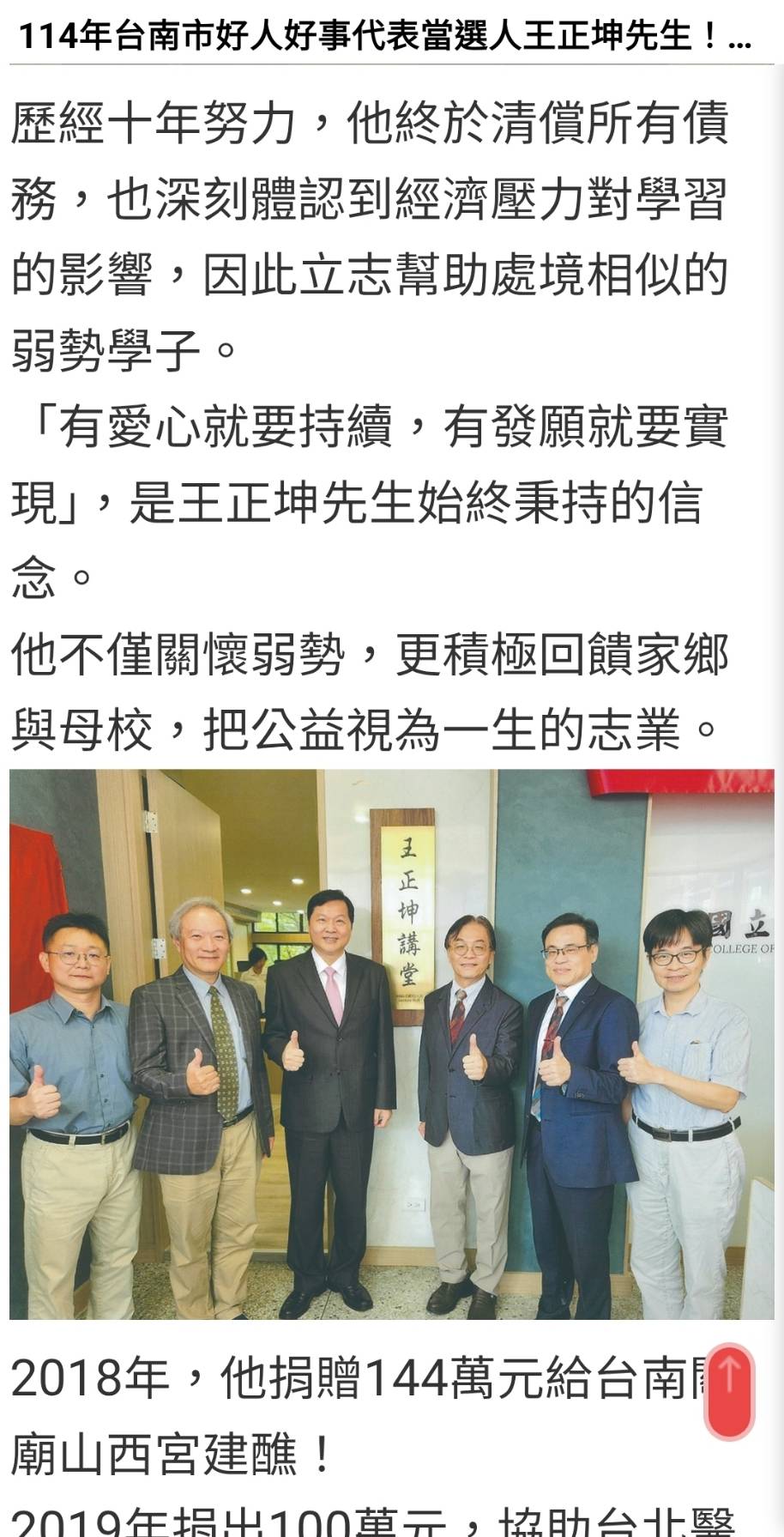 114年台南市好人好事代表當選人王正坤先生!(天地傳媒,通天透地,貫穿古今)