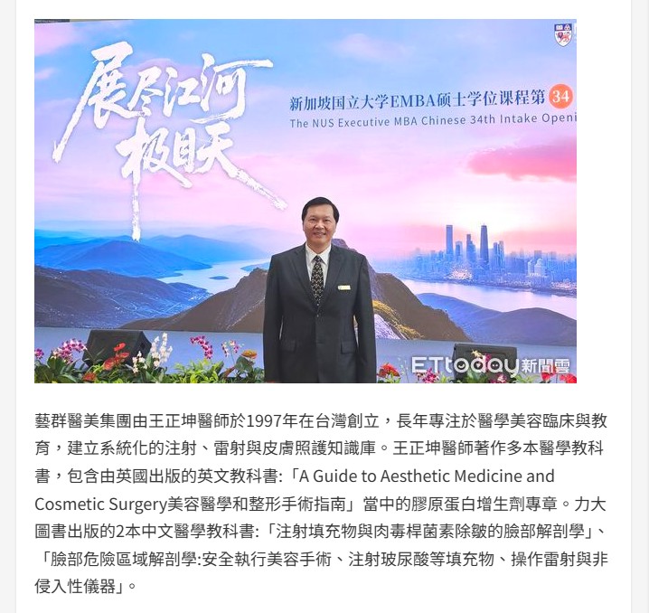 王正坤醫師獲NUS社會影響力獎學金 藝群醫美首站海外拓展新加坡 -東森新聞雲-ETtoday新聞雲