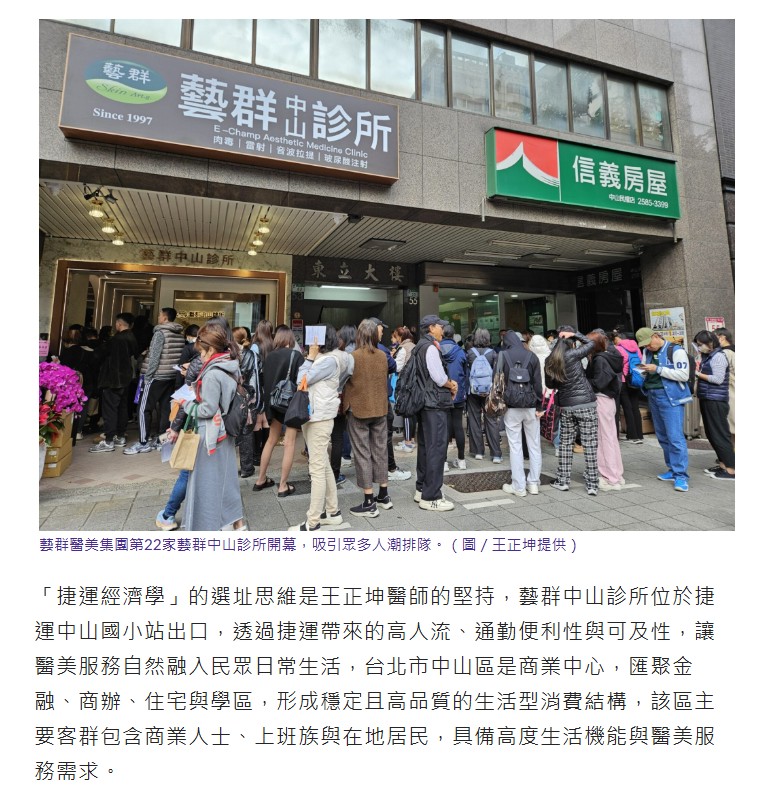 藝群醫美集團第22家藝群中山診所開幕 深耕捷運經濟學插旗台北中山區商圈 -新頭條新聞-享新聞-睿傳媒-台南時報-yam新聞 蕃薯藤新聞-PChome 新聞 -1