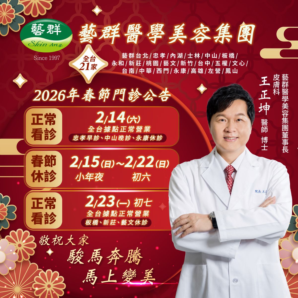 2/23(一)正常營業(板橋、新莊、藝文休診)