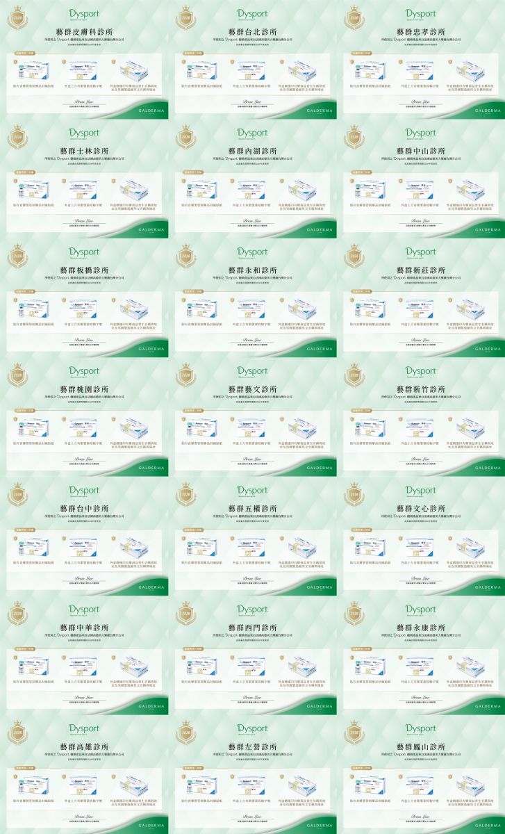 來自英國的Dysport肉毒桿菌素,享譽醫美市場30年,廣泛應用於全球超過75個國家,具安全性且患者滿意度良好,經常應用於各式表情動態紋路,與大範圍部位肌肉與腋窩多汗症等。