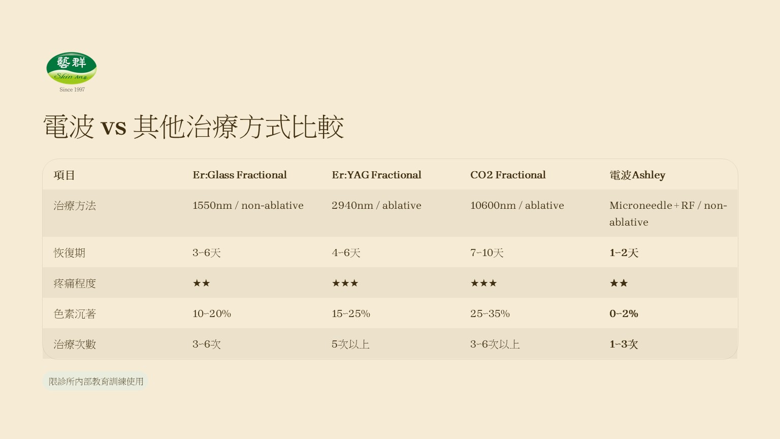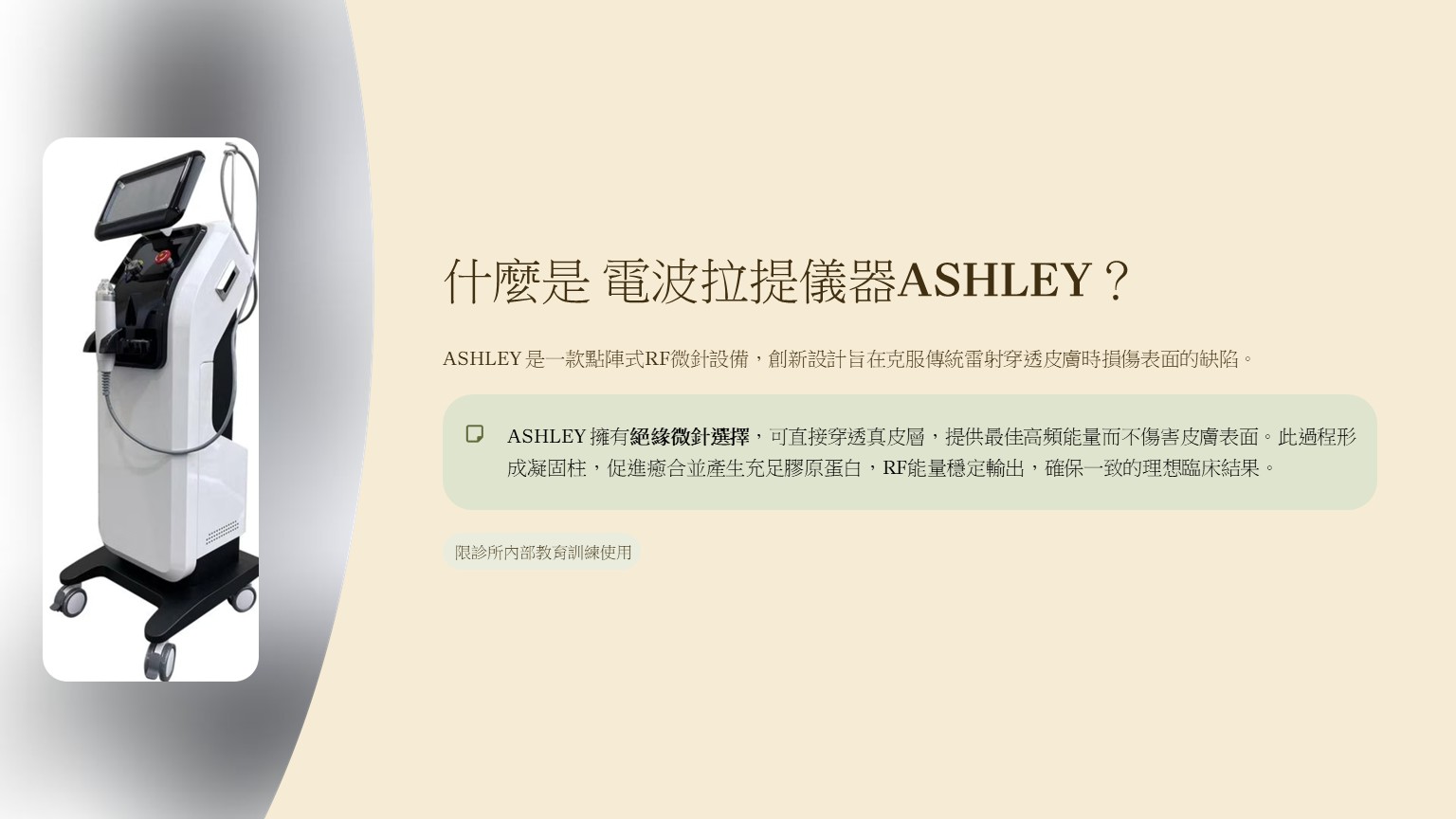 電波拉提恢復期1~2天,疼痛指數★★,色素沉著0~2%,治療次數1~3次