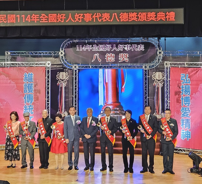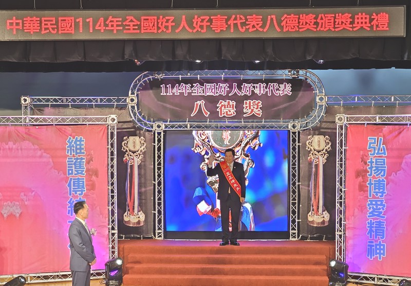 由中華民國表揚好人好事運動協會主辦的「114年全國好人好事代表八德獎頒獎典禮」,於12月10日在臺北市政府青年局舉行。王正坤醫師以長年深耕醫療公益、扶助弱勢及回饋教育的卓越事蹟,榮獲「八德獎」殊榮,成為全國醫界與企業界兼具的典範代表。