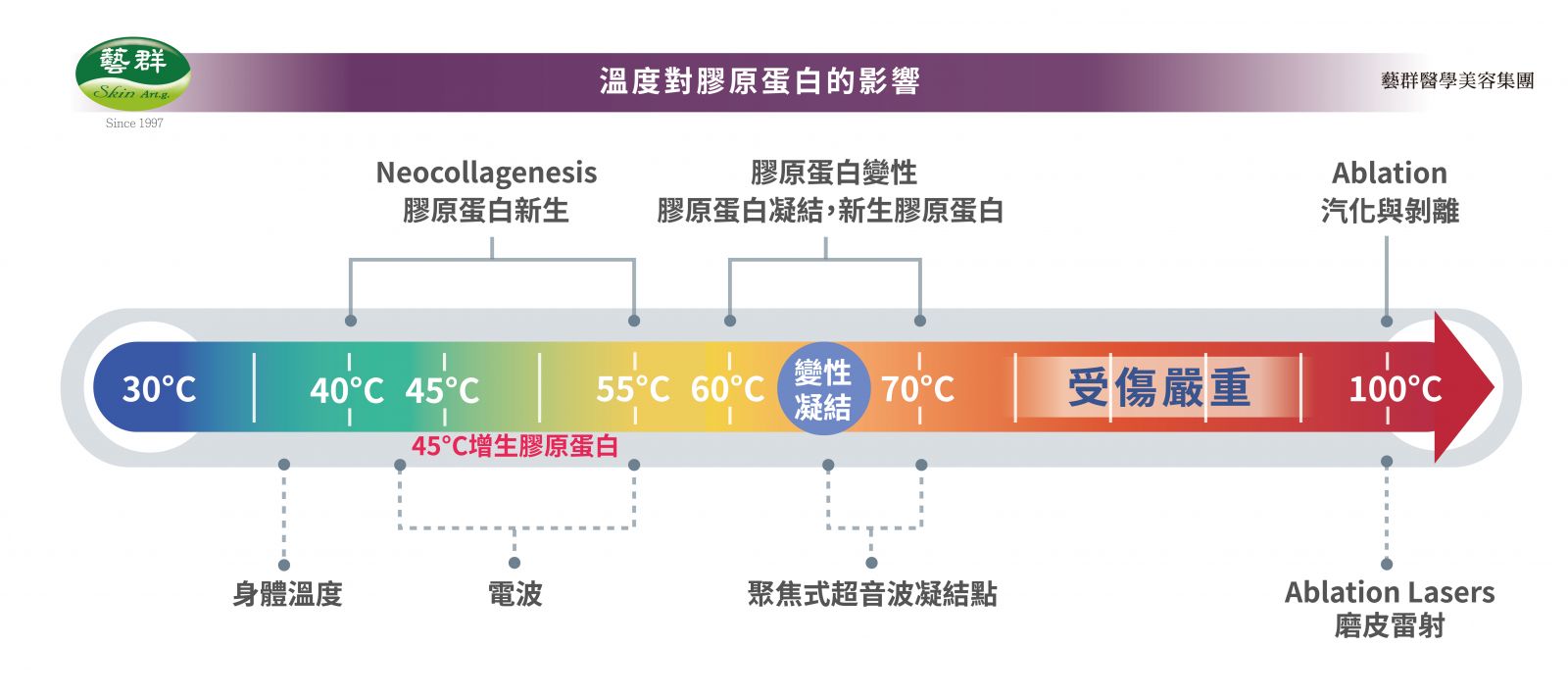 ④ 膠原蛋白再生:新的膠原蛋白和彈性蛋白進行形成與癒合過程。